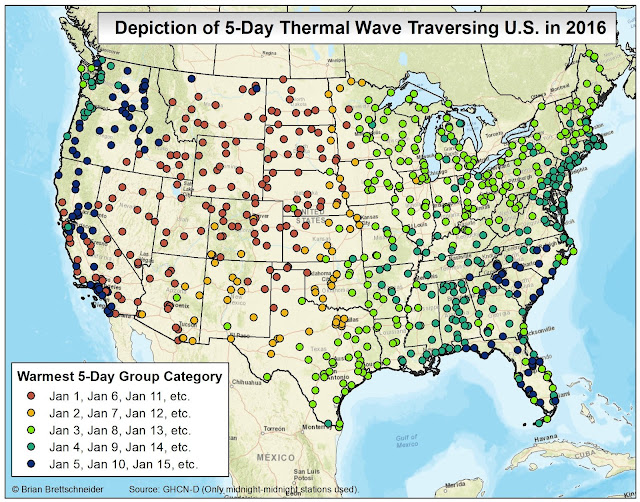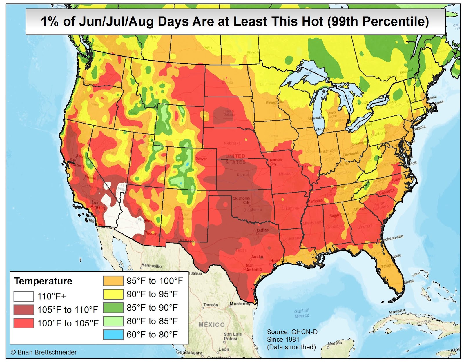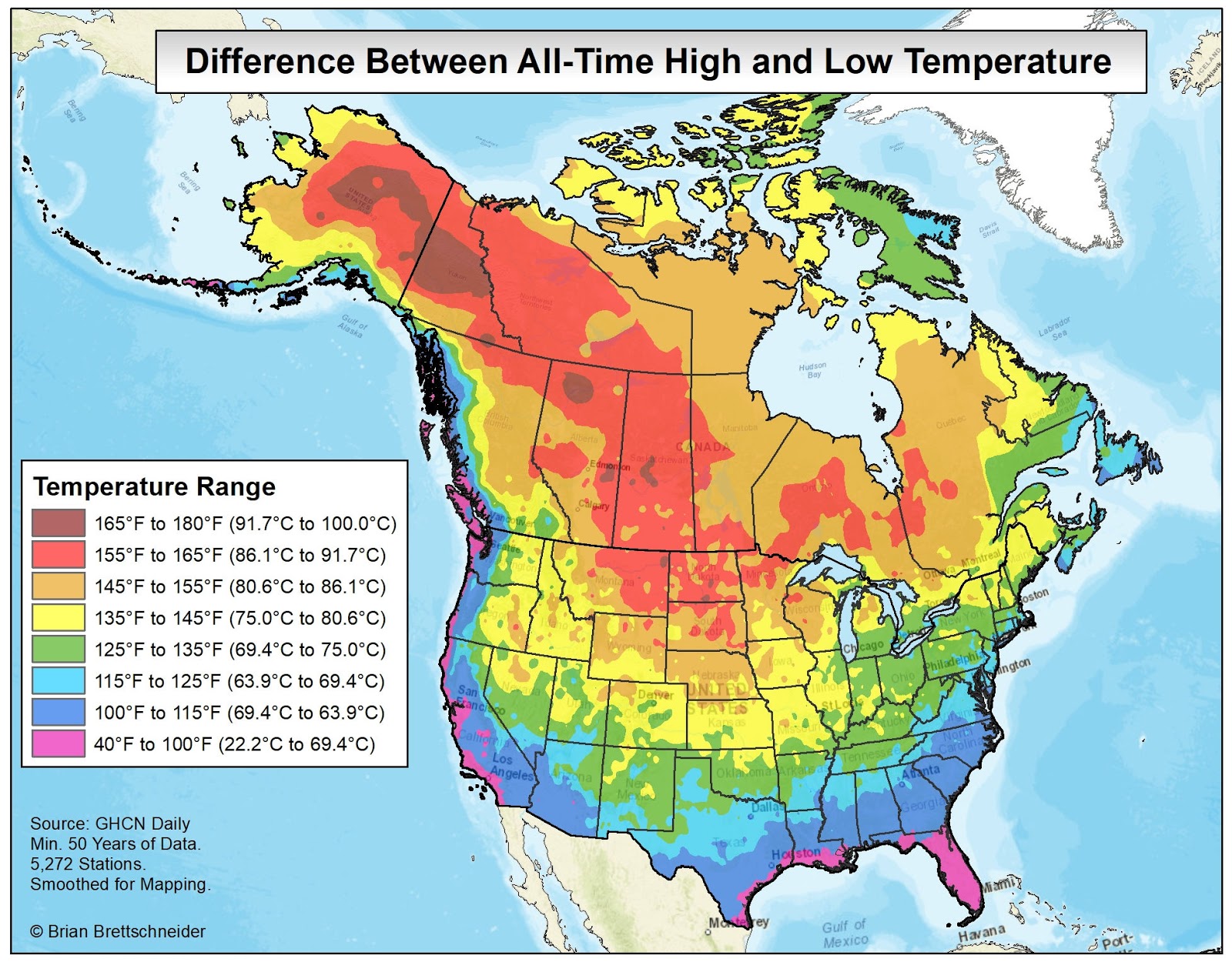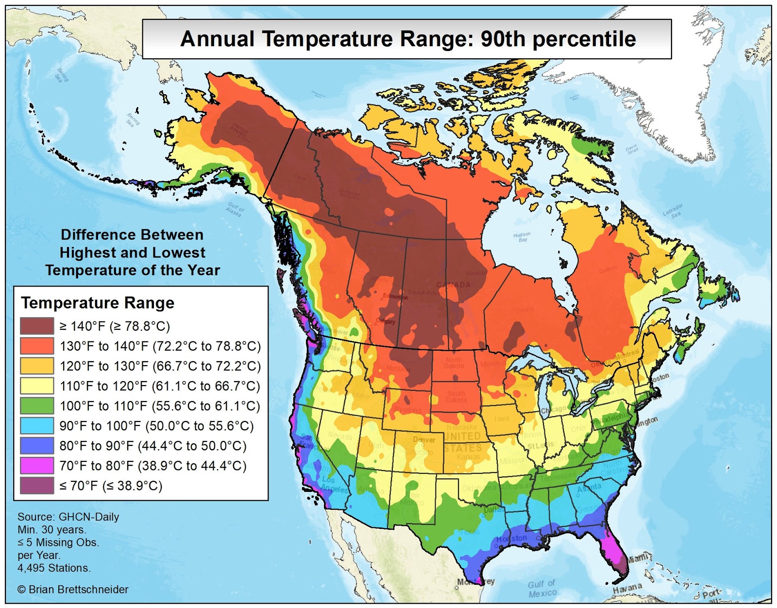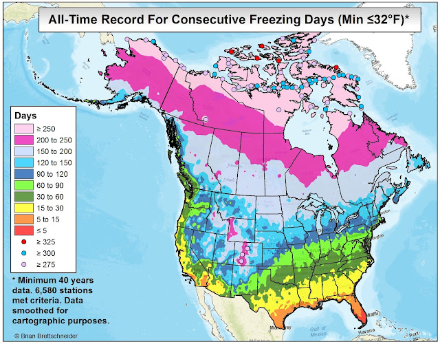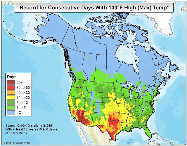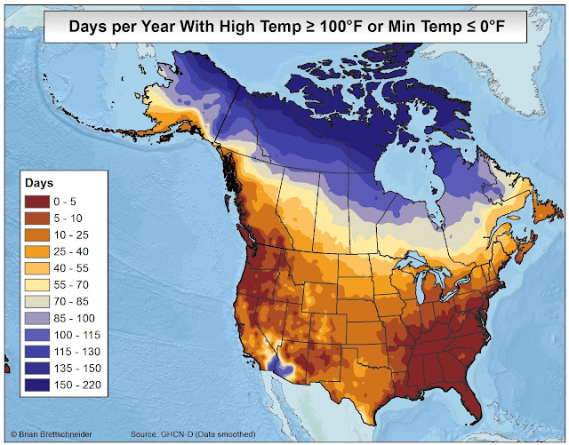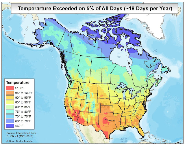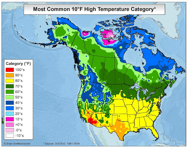 In all my (many) years of making maps, the most popular by far is the 70°F Road Trip map that I originally produced in 2015. It's been shared over 10 million times on various platforms if I had to guess. Maybe 20 million. That map was a hypothetical trip through the U.S. with the route tracking where the normal daily high temperature was approximately 70°F (21°C). I have been contacted numerous times over the years since from people who want to bike or drive the trip. It has resonated with people in a way I never imagined.