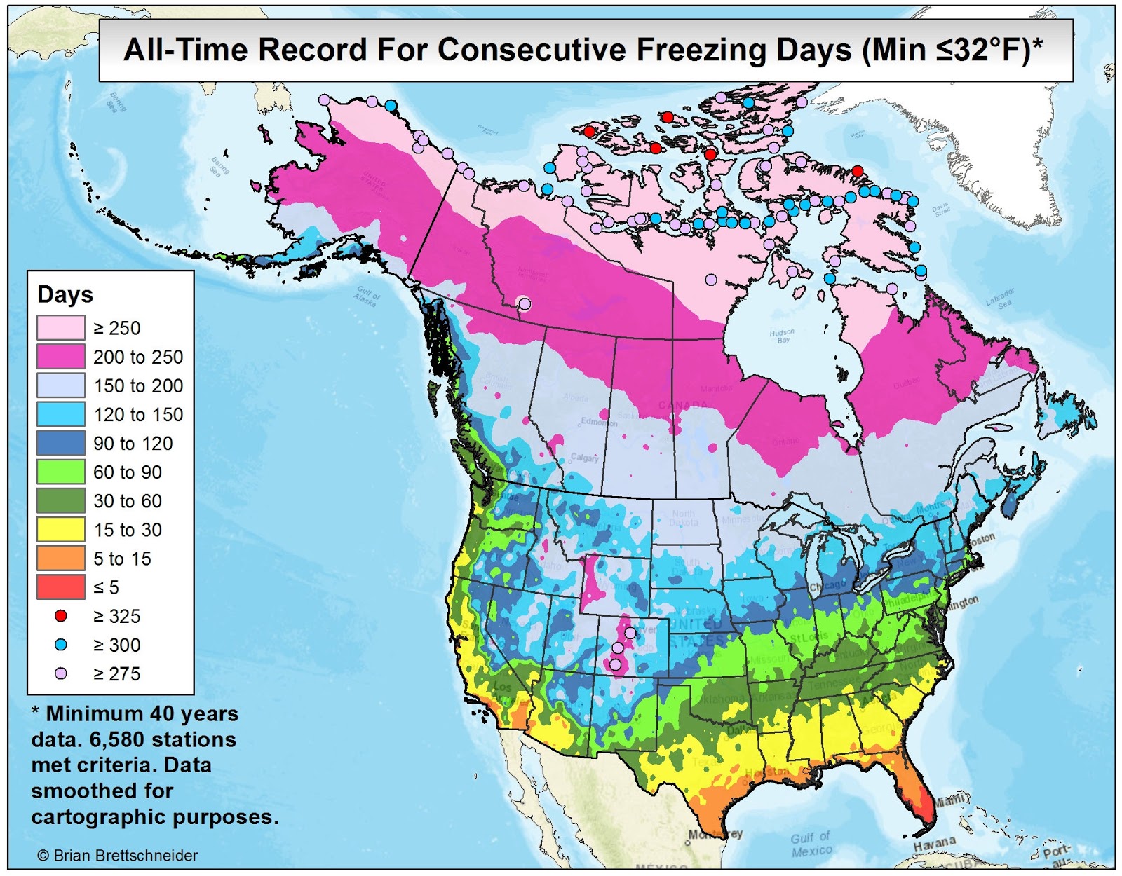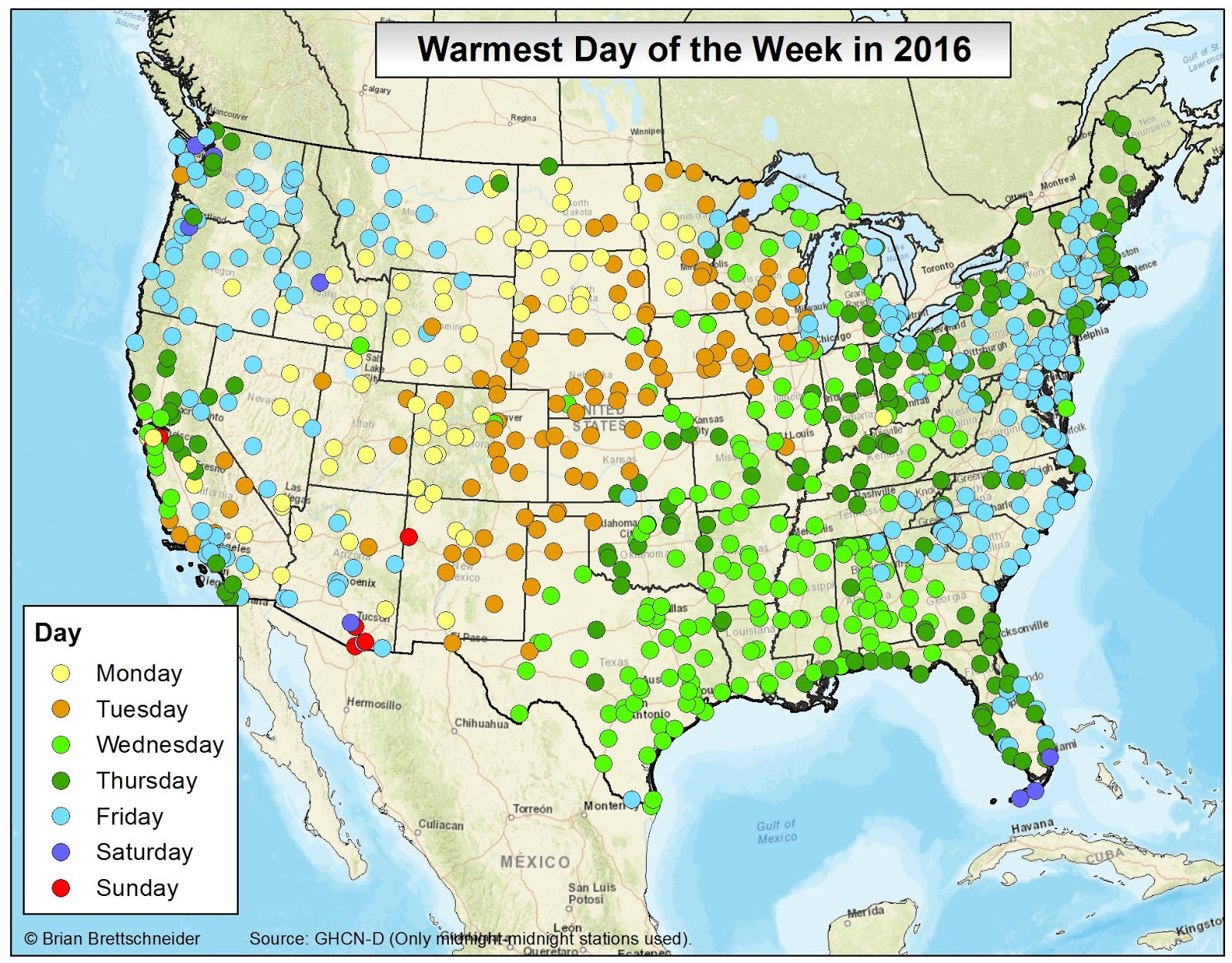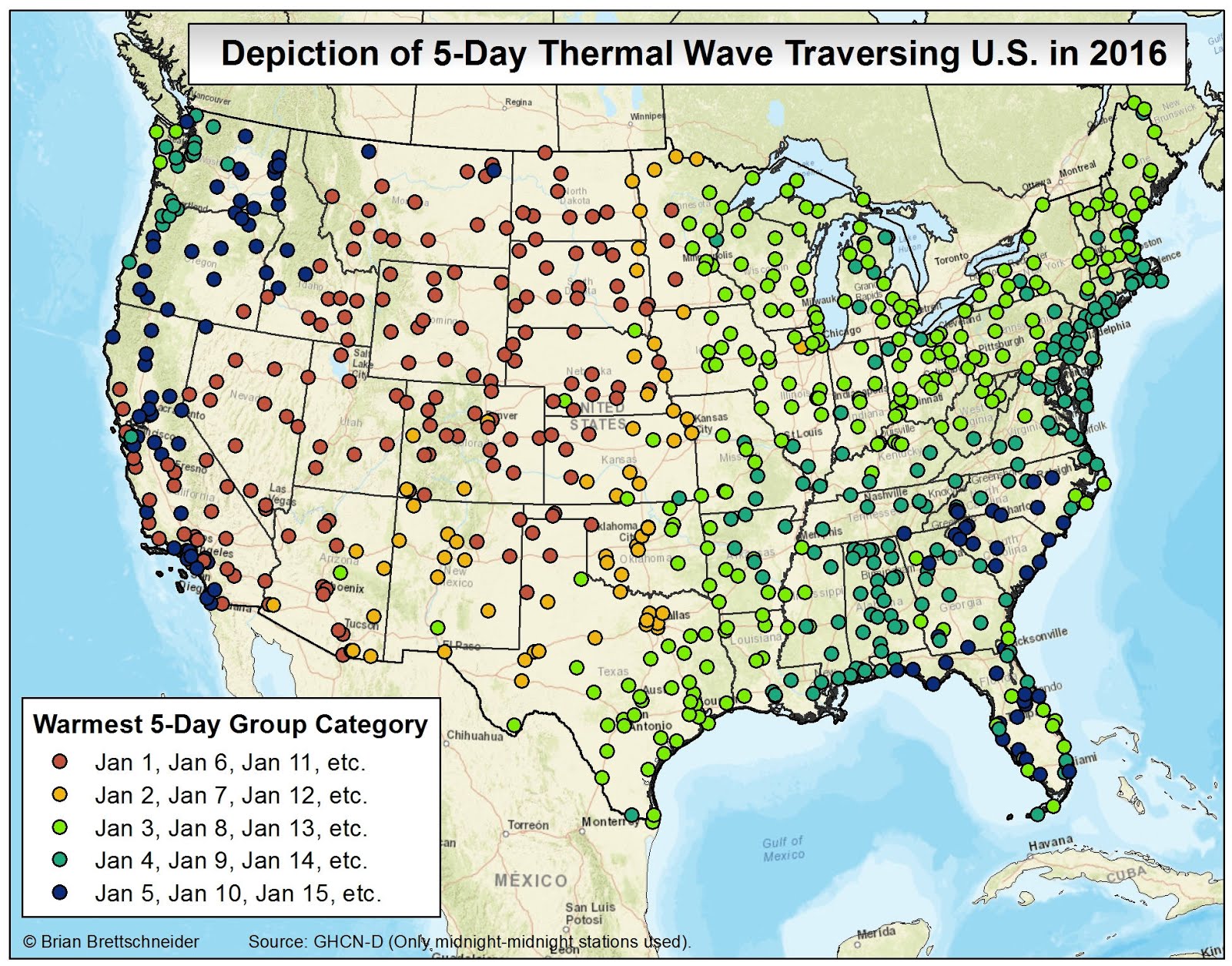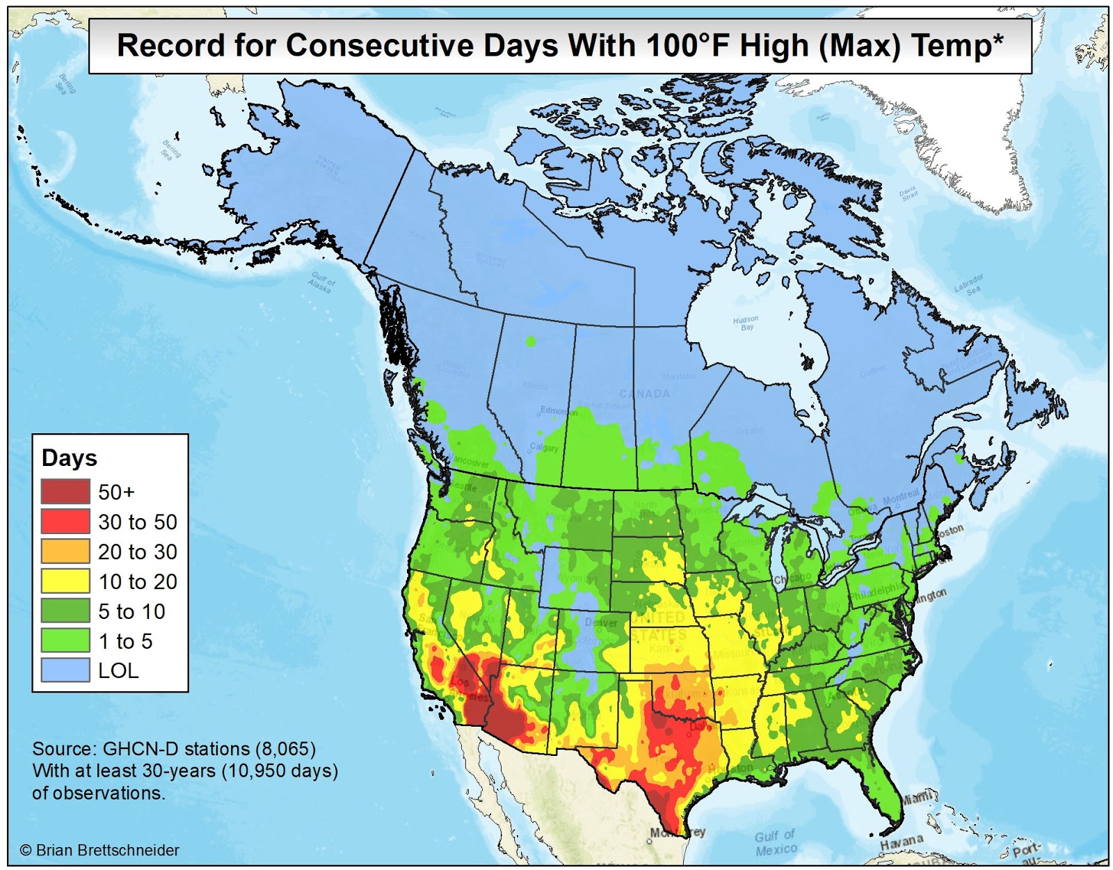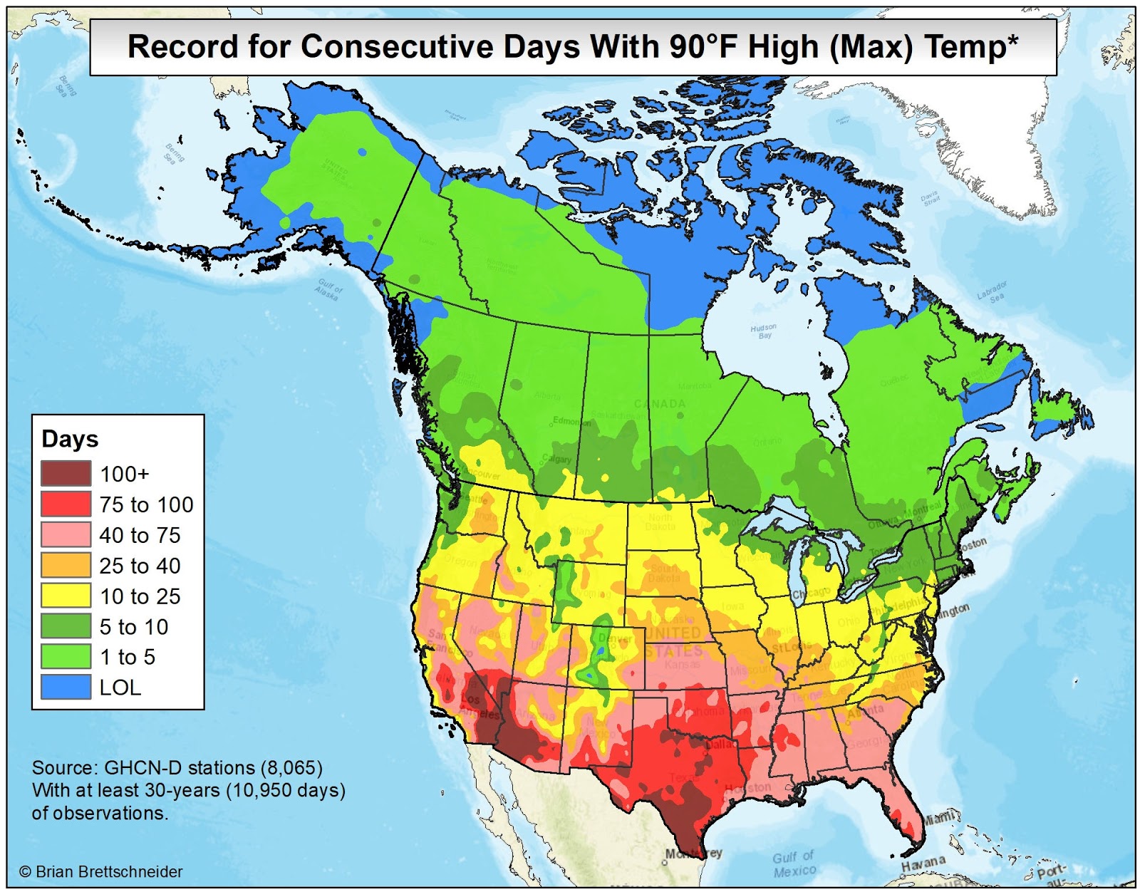 In all my (many) years of making maps, the most popular by far is the 70°F Road Trip map that I originally produced in 2015. It's been shared over 10 million times on various platforms if I had to guess. Maybe 20 million. That map was a hypothetical trip through the U.S. with the route tracking where the normal daily high temperature was approximately 70°F (21°C). I have been contacted numerous times over the years since from people who want to bike or drive the trip. It has resonated with people in a way I never imagined.