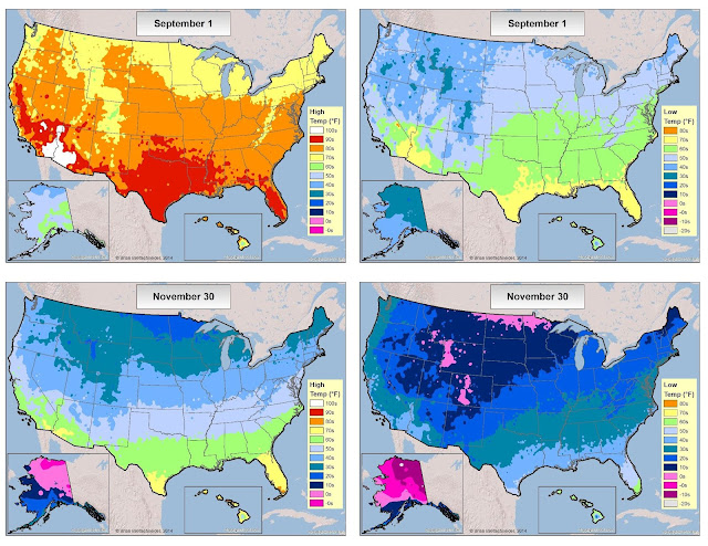 The map was based on the 1981-2010 climate normals produced by the National Center for Environmental Information (NCEI). Every 10 years, new climate normals are produced. In May 2021, the 1991-2020 normals were released by NCEI. Since then, I have been meaning to update the 70°F road trip map with the new normals. Several people have asked about it over the last two years. It might surprise people that as fast as the globe is warming up due to human activity, the shift in 70°F temperatures between 1981-2010 and 1991-2020 is very slight. It's just too short of a time period to capture the distance change. Instead, I decided to come up with new routes. The original route was interesting, but it left out a lot of options. This time around, there are multiple routes to choose from. Enjoy!