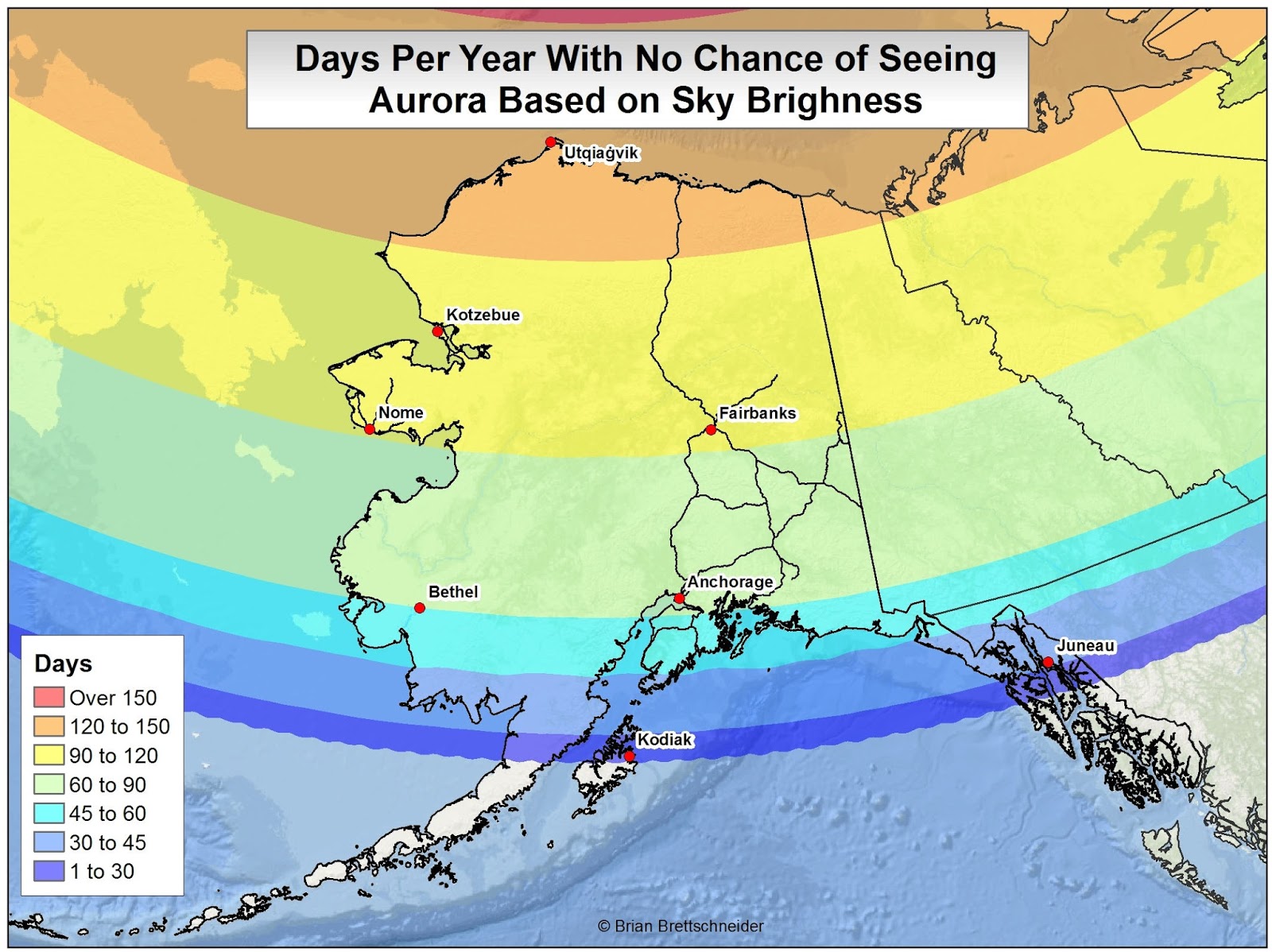 - July - Head south from Fairbanks to just north of Anchorage and continue eastward to the Canadian border. Take the western route to the Lower 48. By the end of the month find your way to Prince George, BC. (1,735 miles - 2,793 km)